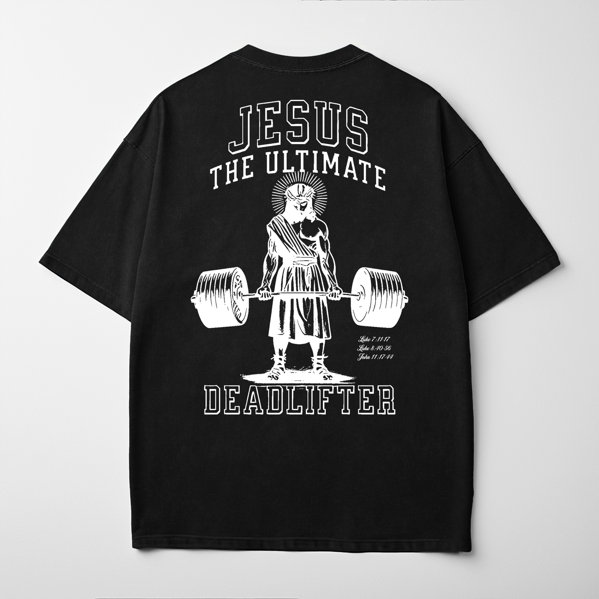 “Jesus The Ultimate Deadlifter” is a bold design reminding us that Christ carried the ultimate weight—our sin—so we could have life. Clean front cross print and a powerful back graphic that sparks conversations of strength and salvation.